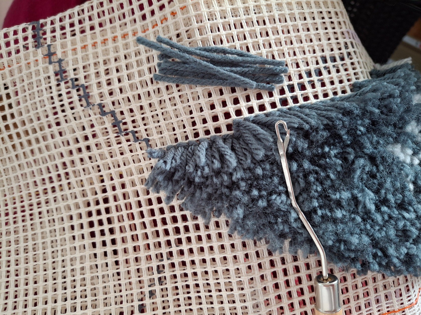 Big moment: I have actually begun a latch-hooking project for which I bought all the materials last year.
