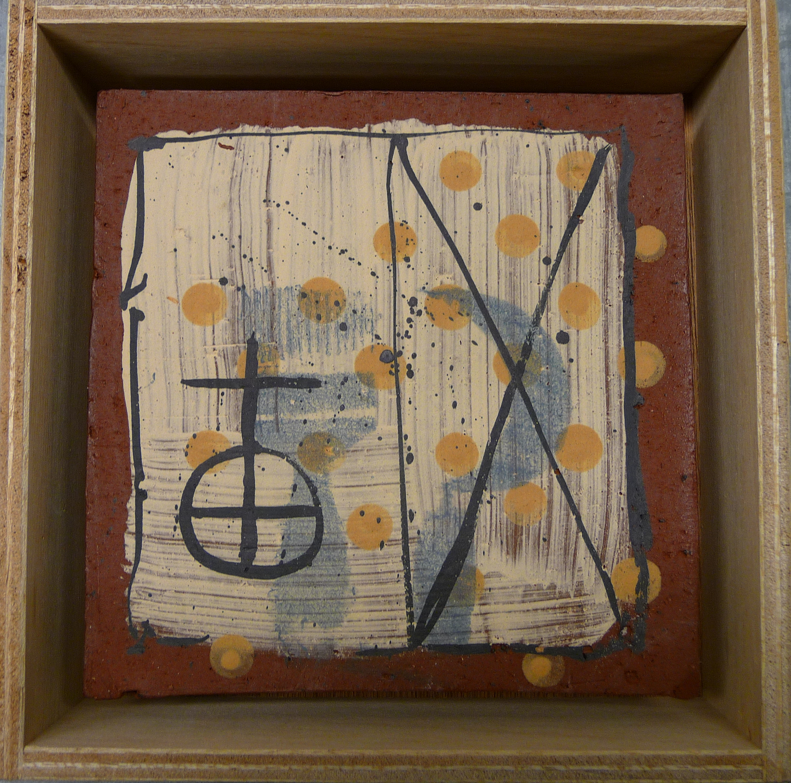 Slipware tile in side-chappel of the church of the Sacred Heart in Tegelen, NL.