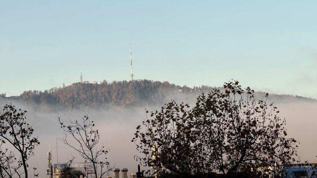 Wunderbar: Der Nebel waberte nur über dem Zürichsee und der Limmat; wir konnten darüber hinweg zum Üetliberg hinüber sehen.