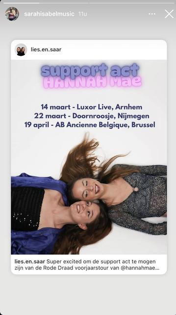 @liesensaar zijn de support act van de Rode Draad voorjaarstour van @hannahmaemusicnl samen met @mellesongs !! 🎶💜 #muziek #liesensaar #doornroosjenijmegen #LuxorLive #zangeres