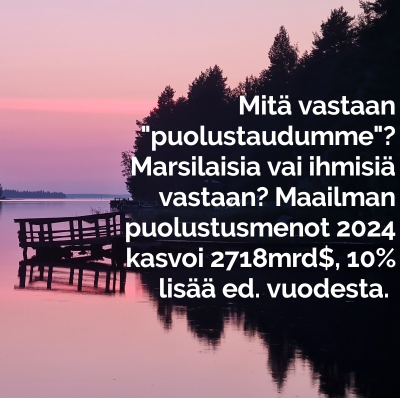 KETÄ VASTAAN ihmiskunta "puolustautuu"? Avaruusolioita ja meteoriitteja vastaan? Vai tällä samalla planeetalla hengittävää luomakuntaa vastaan? Miksi? | Maailman puolustusmenot 2024 nousivat 2718 miljardiin dollariin. Se on 10 % enemmän kuin edellisvuonna. #puolustusmenot #asevarustelu #sota #meteoriitti #avaruus #happi #elämä #ihmiset #luomakunta #yhteinen #maa #planeetta