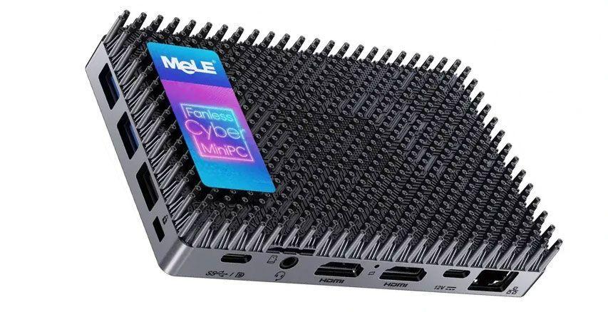 MeLE Cyber X1 is a fanless Intel N150 mini PC with a porcupine-like heat sink on top