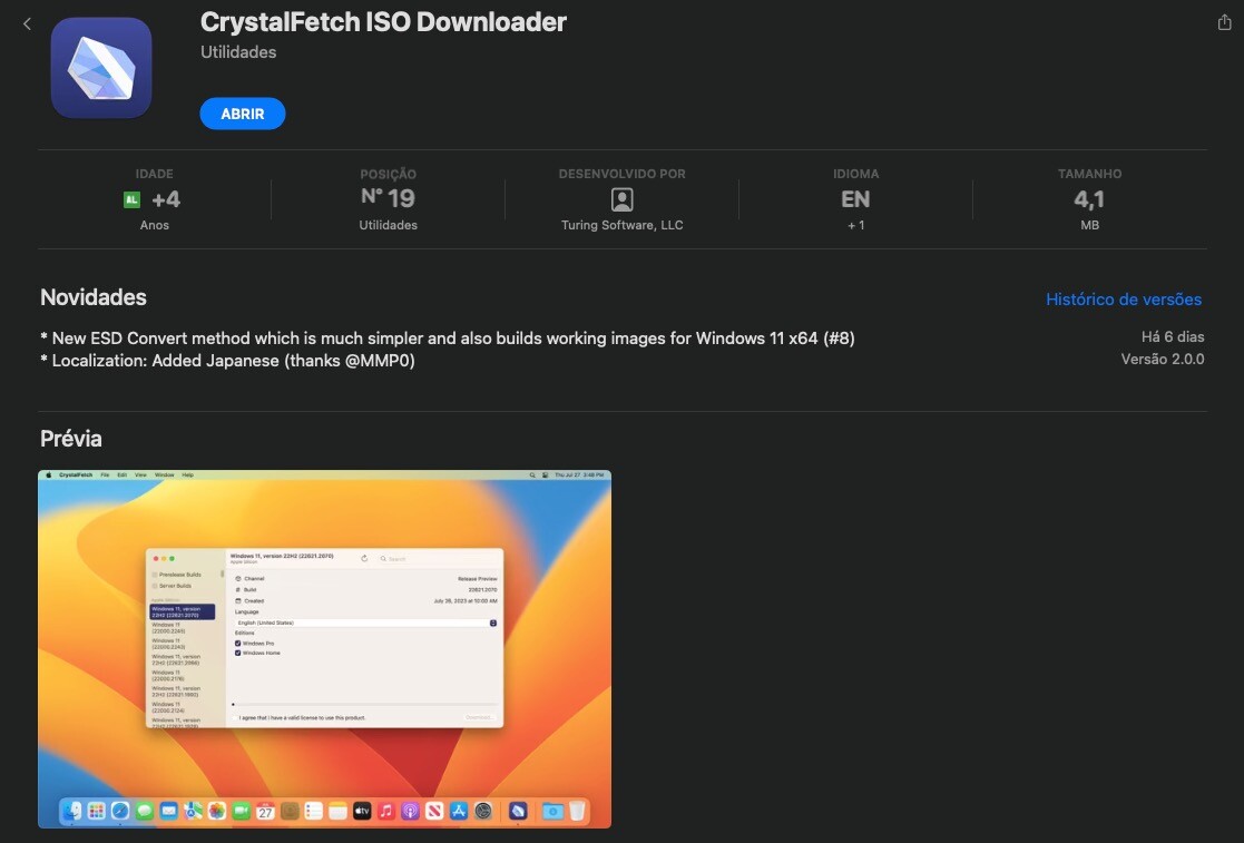 @MacMagazine @rfischmann Dica de app para baixar ISO do Windows 11 atualizada via macOS: CrystalFetch ISO Downloader. https://apps.apple.com/br/app/crystalfetch-iso-downloader/id6454431289?mt=12