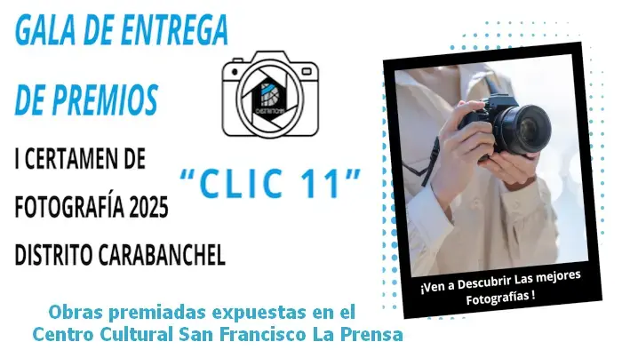 📌La Junta Municipal de Carabanchel ha entregado los premios de ‘Clic 11’ para promover la fotografía en el distrito