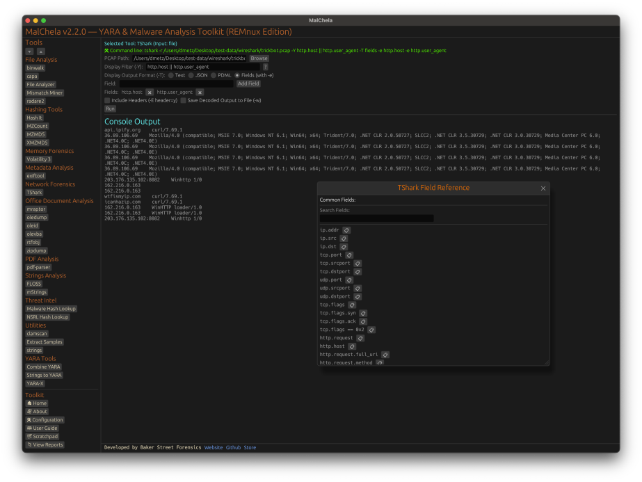 This helps analysts build and understand filters quickly—even if TShark isn’t something they use every day. Using the syntax builder in MalChela you can use the exact commands directly in Tshark or Wireshark.