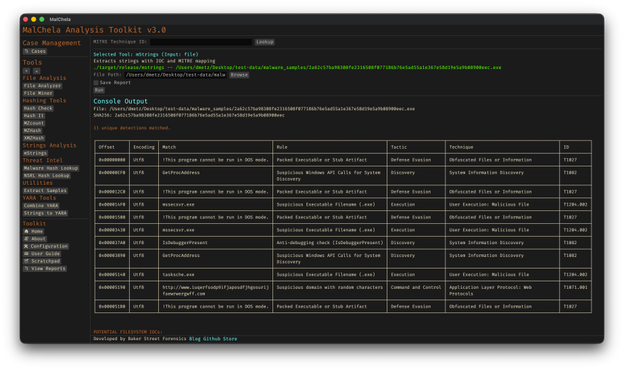MalChela’s 2.2 update is packed with practical and platform-friendly improvements. It includes native support for REMnux, better tool settings, and deeper integrations with analysis tools like YARA-X, Tshark, Volatility3, and the newly improved fileanalyzer module.