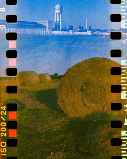 Capturing Tempelhof in a different way – embracing grainy textures, unreal colors, and the charm of film borders and sprockets.