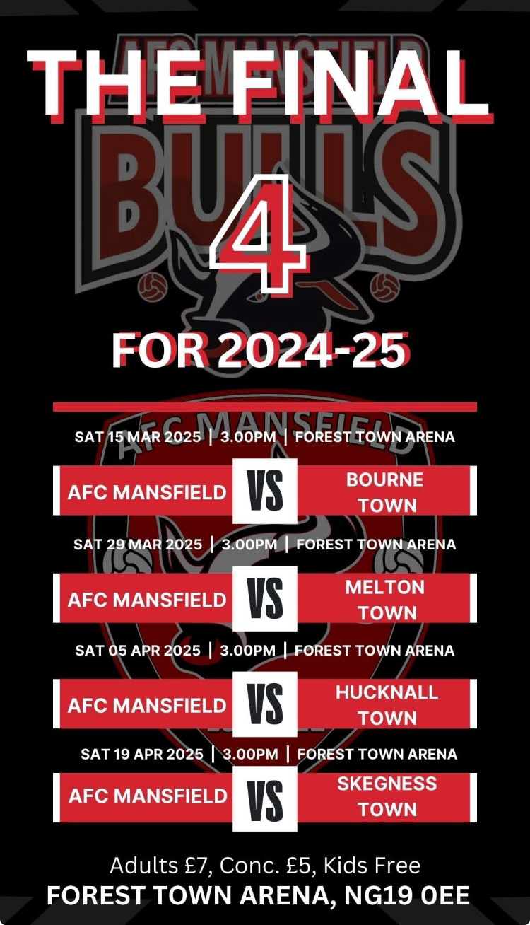 Final 4 Home games of the season for AFC #Mansfield #NonLeagueFootball #Soccer