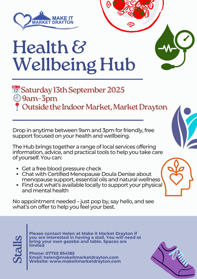 π Where: The Zone Community Hub, Linden Way, Market Drayton