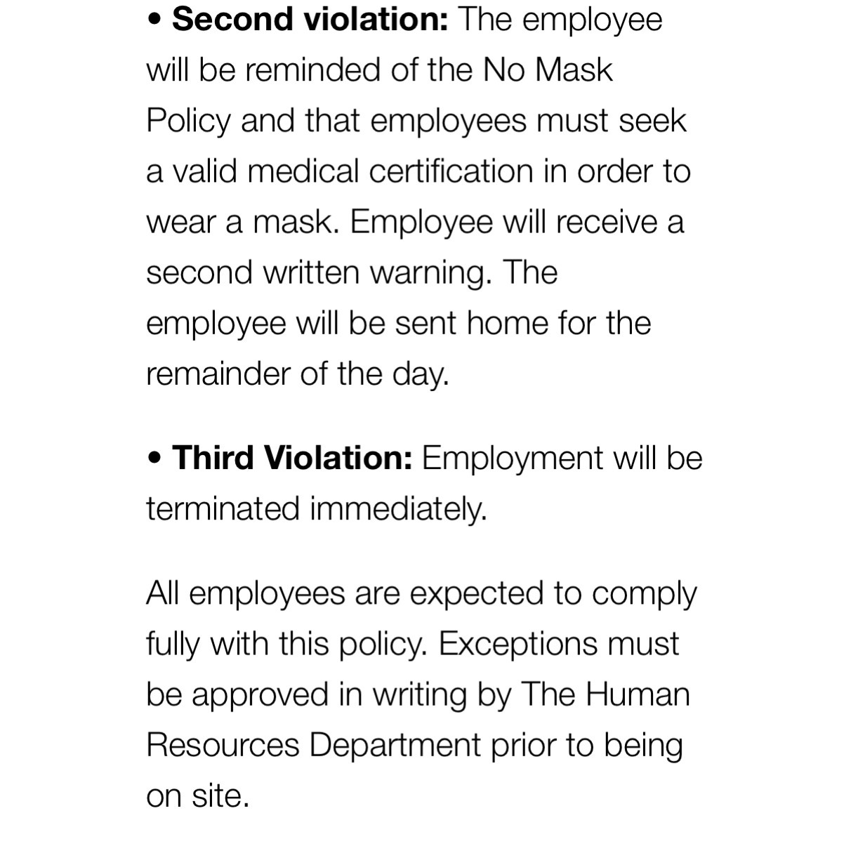 Employees must obtain a doctor’s note if they feel their disability merits wearing a mask. They will be forced to divulge medical information to their employer.