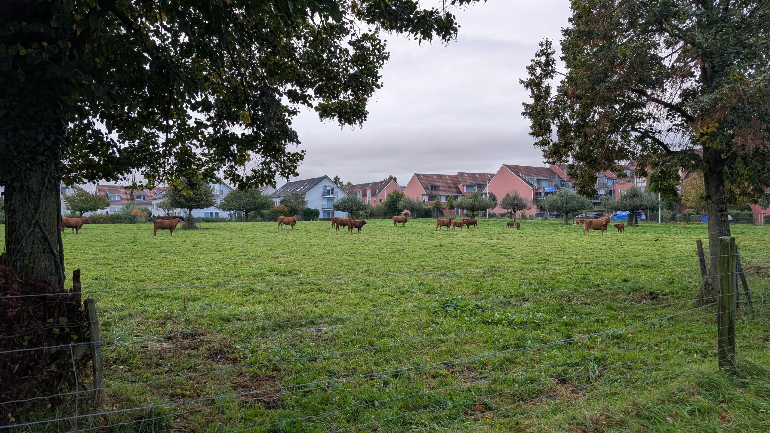 On my way to an appointment down in Basel this morning. It was cold-ish, but still Birkenstock-adequate (for me), and the young cows were frolicking in the field.