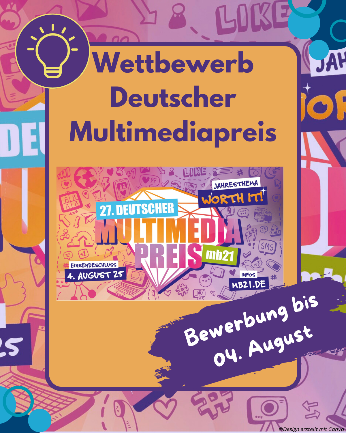 💡 Du bist unter 25 und kreativ mit digitalen Medien unterwegs? Reiche jetzt dein Projekt ein – egal ob App, Game, Video oder Website!