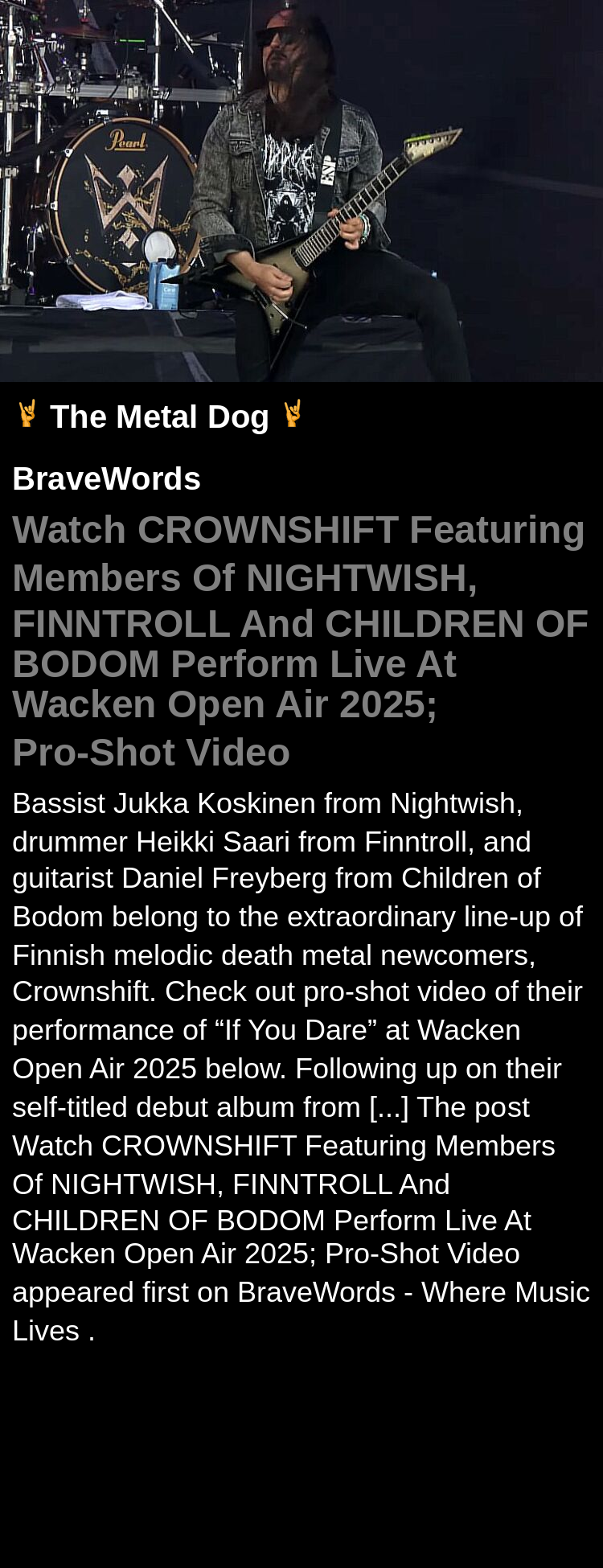 Watch CROWNSHIFT Featuring Members Of NIGHTWISH, FINNTROLL And CHILDREN OF BODOM Perform Live At Wacken Open Air 2025; Pro-Shot Video