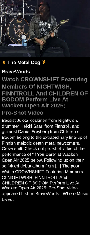 #CROWNSHIFT #NIGHTWISH #Watch #FeaturingMembersOf #deathmetal #melodicdeathmetal #album #video #drummer #guitarist #bassist #BraveWords
