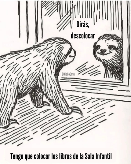 #Bibliomeme / #Memebibliotecario dedicado a ese momento en que tus Compas de #biblioteca se ponen en plan "tenemos que colocar la Sala Infantil" y yo me miro al espejo y me digo... 🦥😡👉🏻🤣