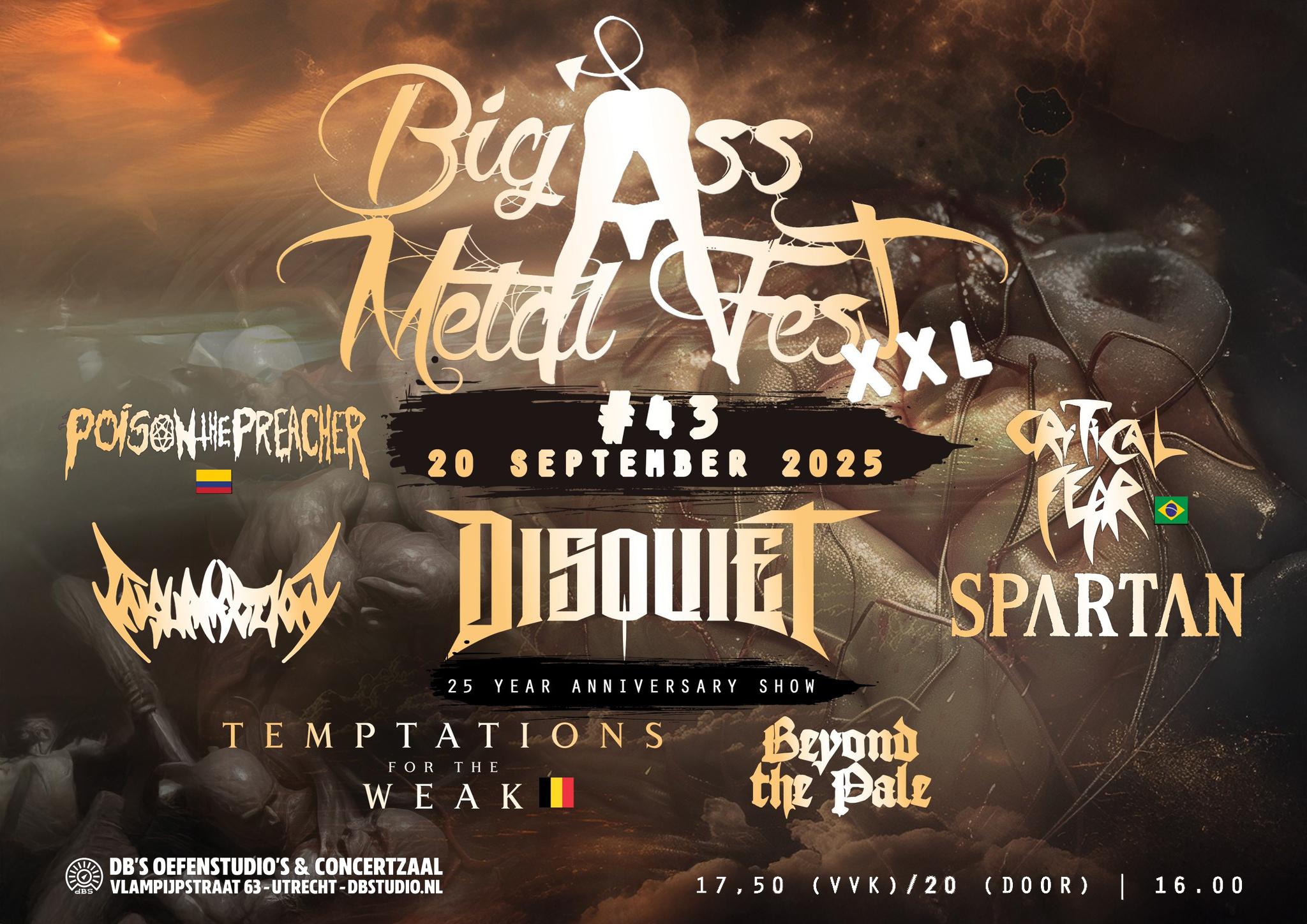 Tickets: https://www.dbstudio.nl/event/big-ass-metal-xxl-43-disquiet-25-years-anniversary-w-beyond-the-pale-temptations-for-the-weak-b-insurrection-nl-scars-no/