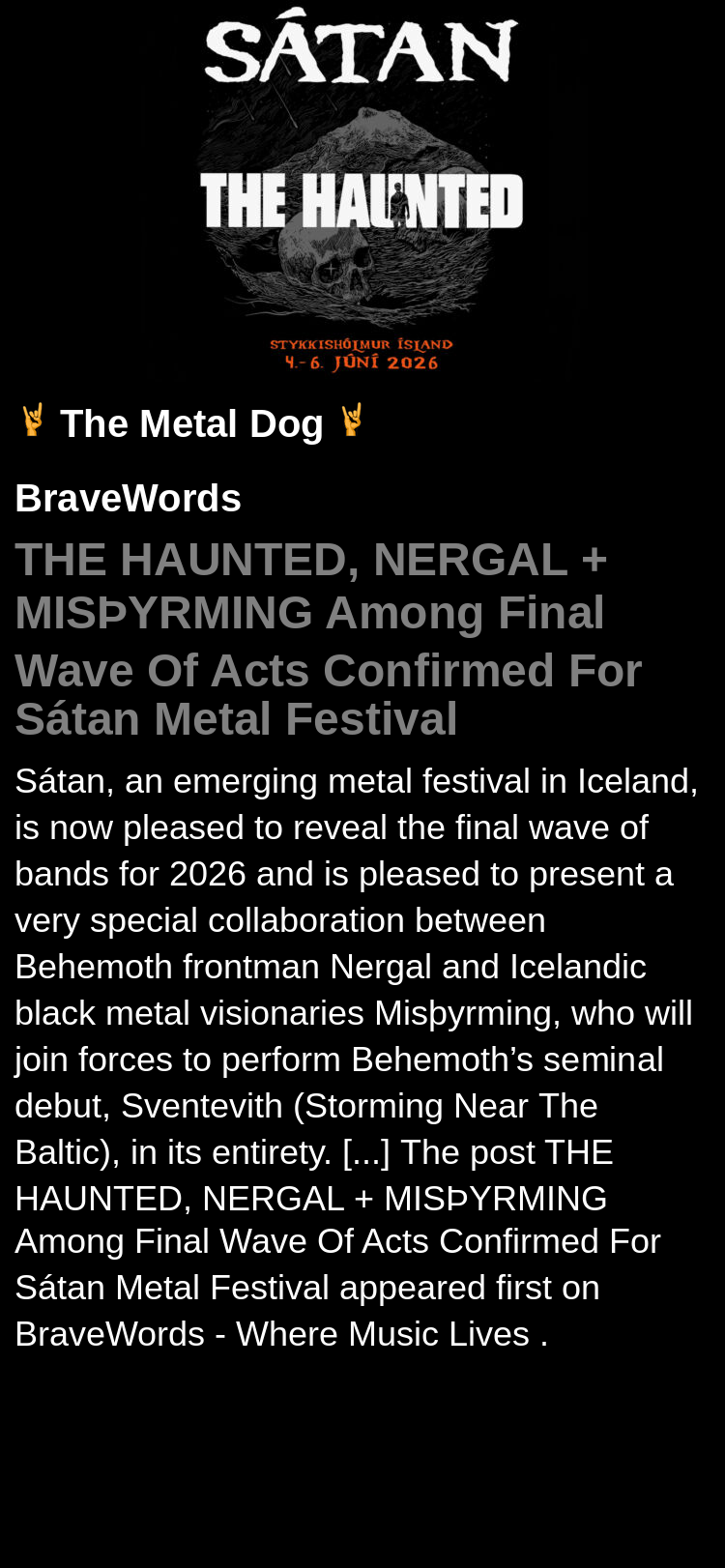 #THEHAUNTED #NERGAL #AmongFinalWaveOfActsConfirmedFor #MetalFestival #blackmetal #festival #BraveWords #metal #music
