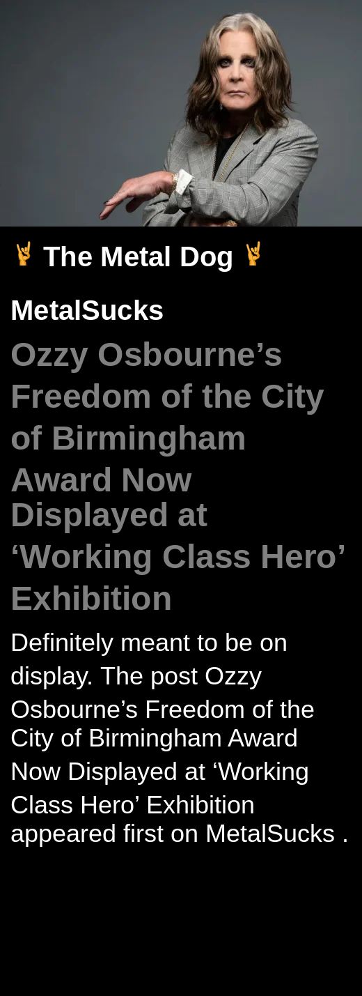 Metal Sucks 🤘 Ozzy Osbourne’s Freedom of the City of Birmingham Award Now Displayed at ‘Working Class Hero’ Exhibition: Definitely meant to be on display.