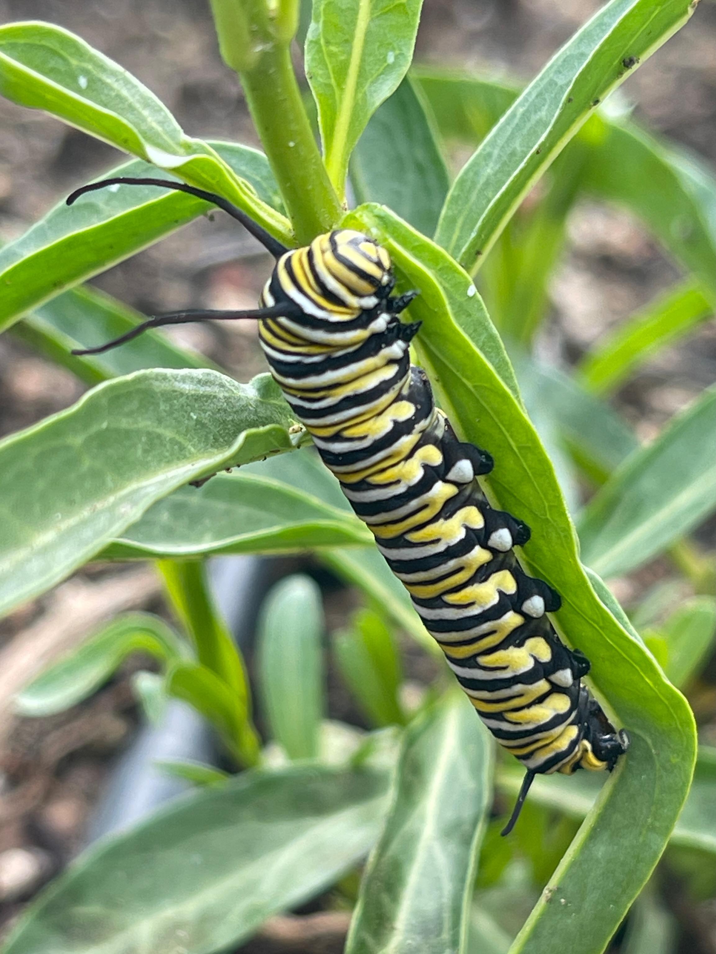 Monarchs have been laying eggs on our milkweed plant all summer! The monarch eggs have a 2-5% egg survival rate in nature and are listed as a threatened species, so we have been raising quite a few of them lately. Super excited to see our first butterfly emerge 🐛🦋✨