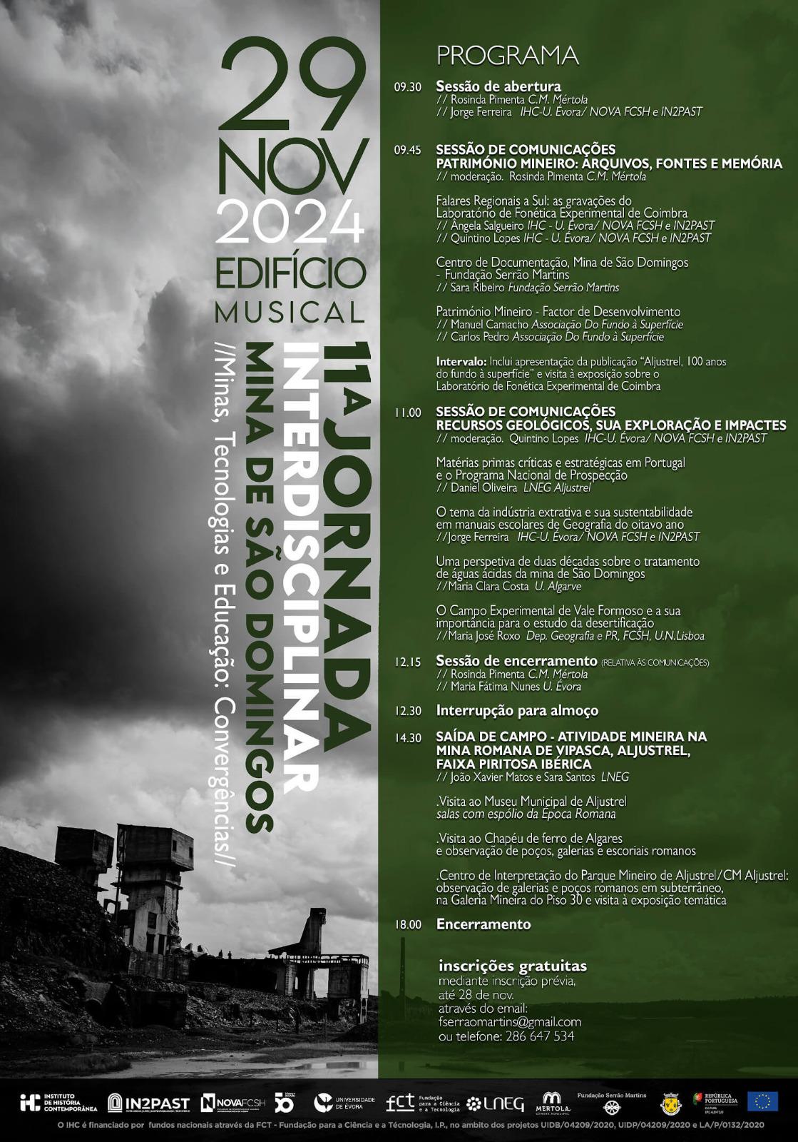 Estão abertas as inscrições para a 10ª Jornada Interdisciplinar na Mina de São Domingos — Minas, tecnologias e educação: convergências, que co-organizamos no dia 4 de Dezembro.