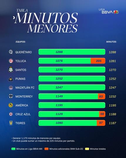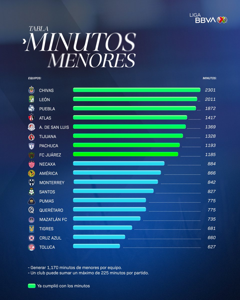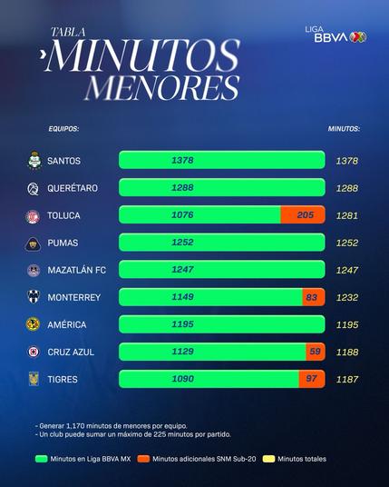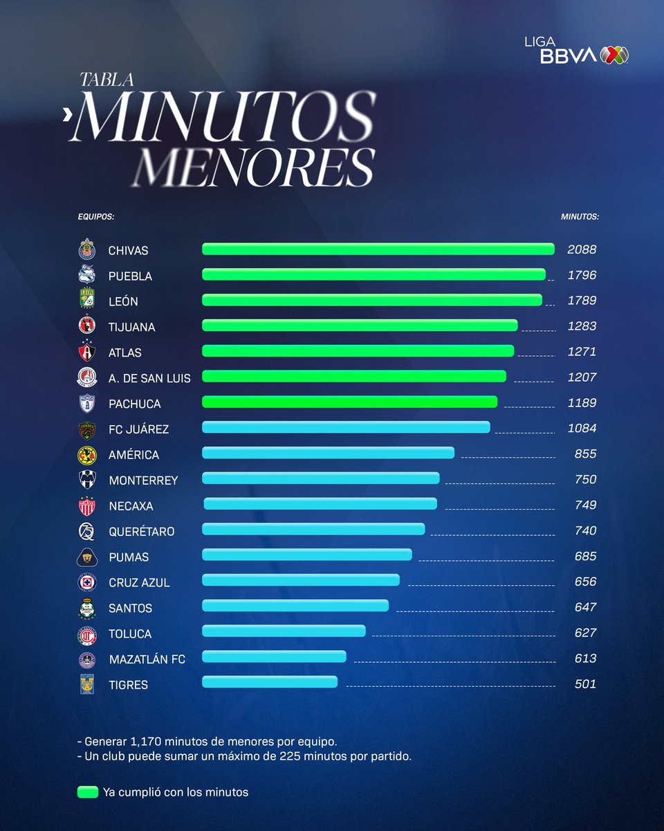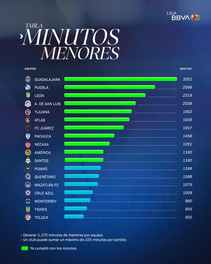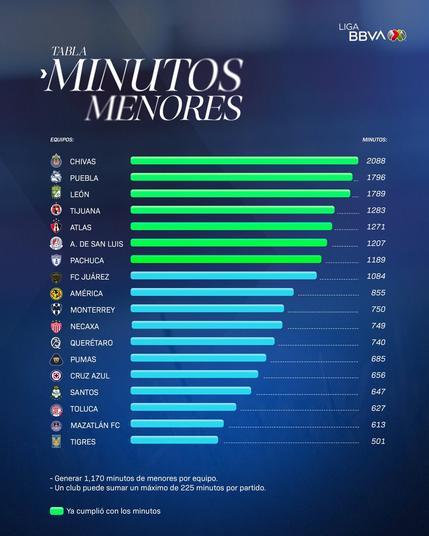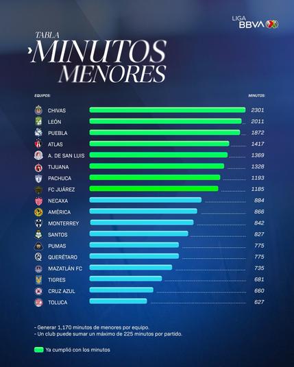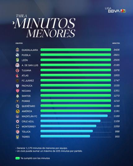 Oficialmente TODOS los equipos de #LigaBBVAMX cumplieron con los #MinutosDeMenores en este torneo.