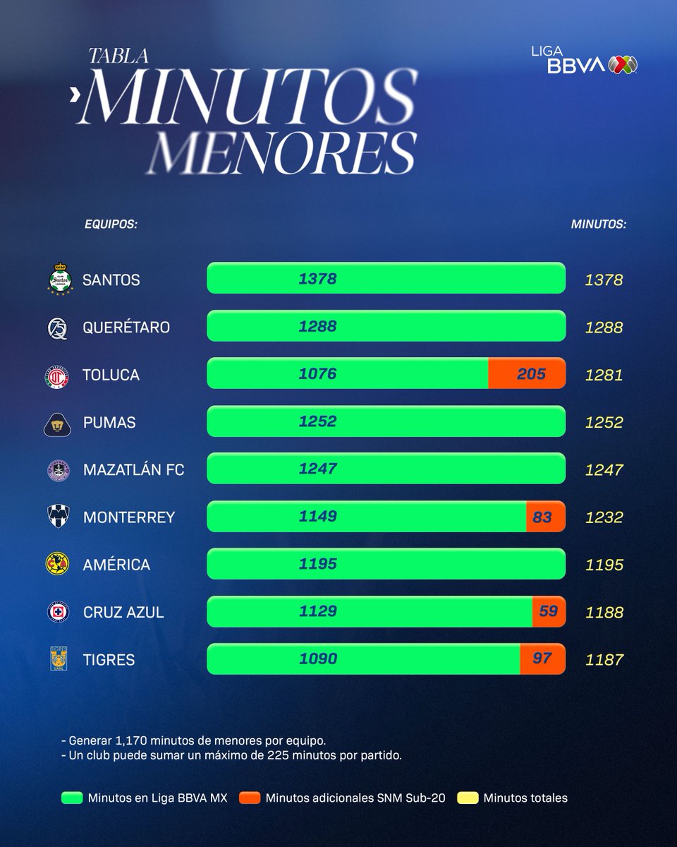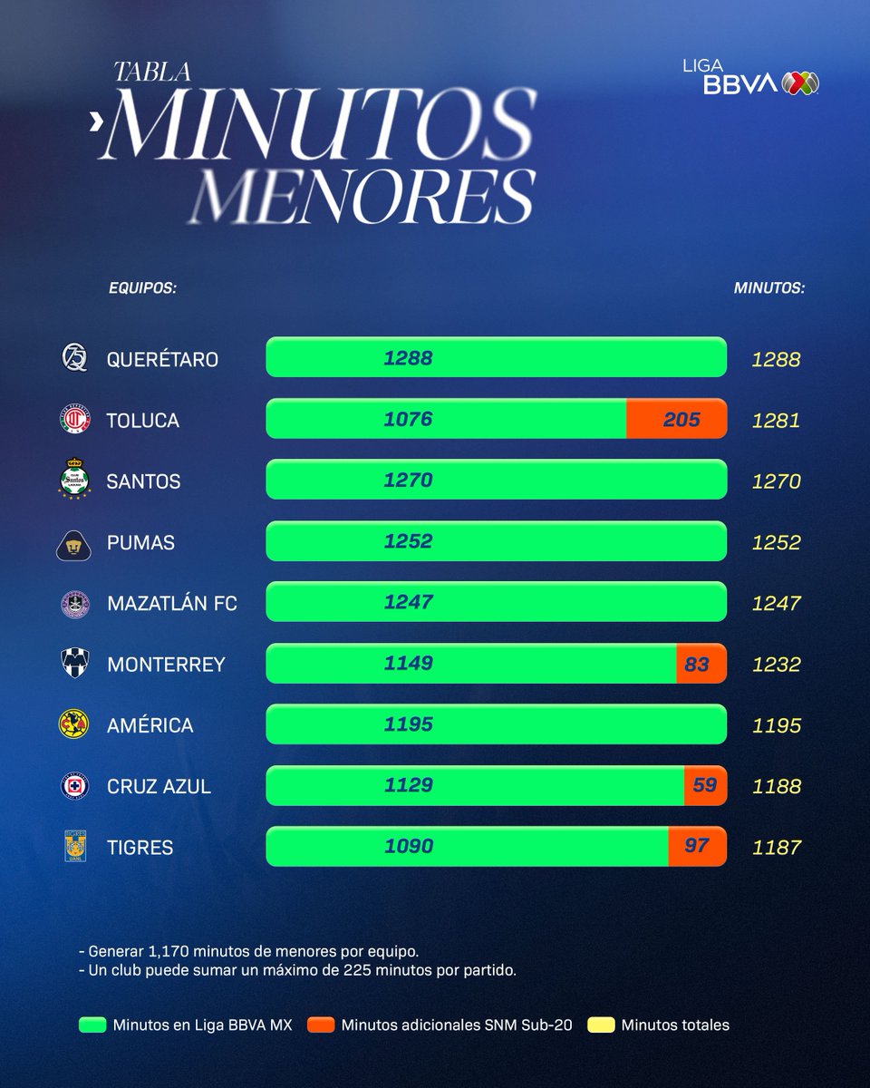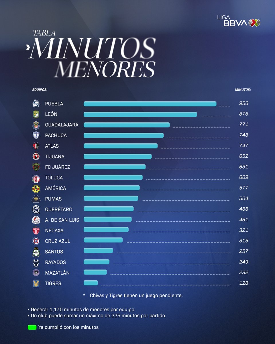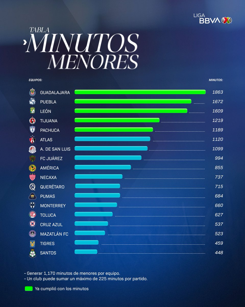 Oficialmente TODOS los equipos de #LigaBBVAMX cumplieron con los #MinutosDeMenores en este torneo.
