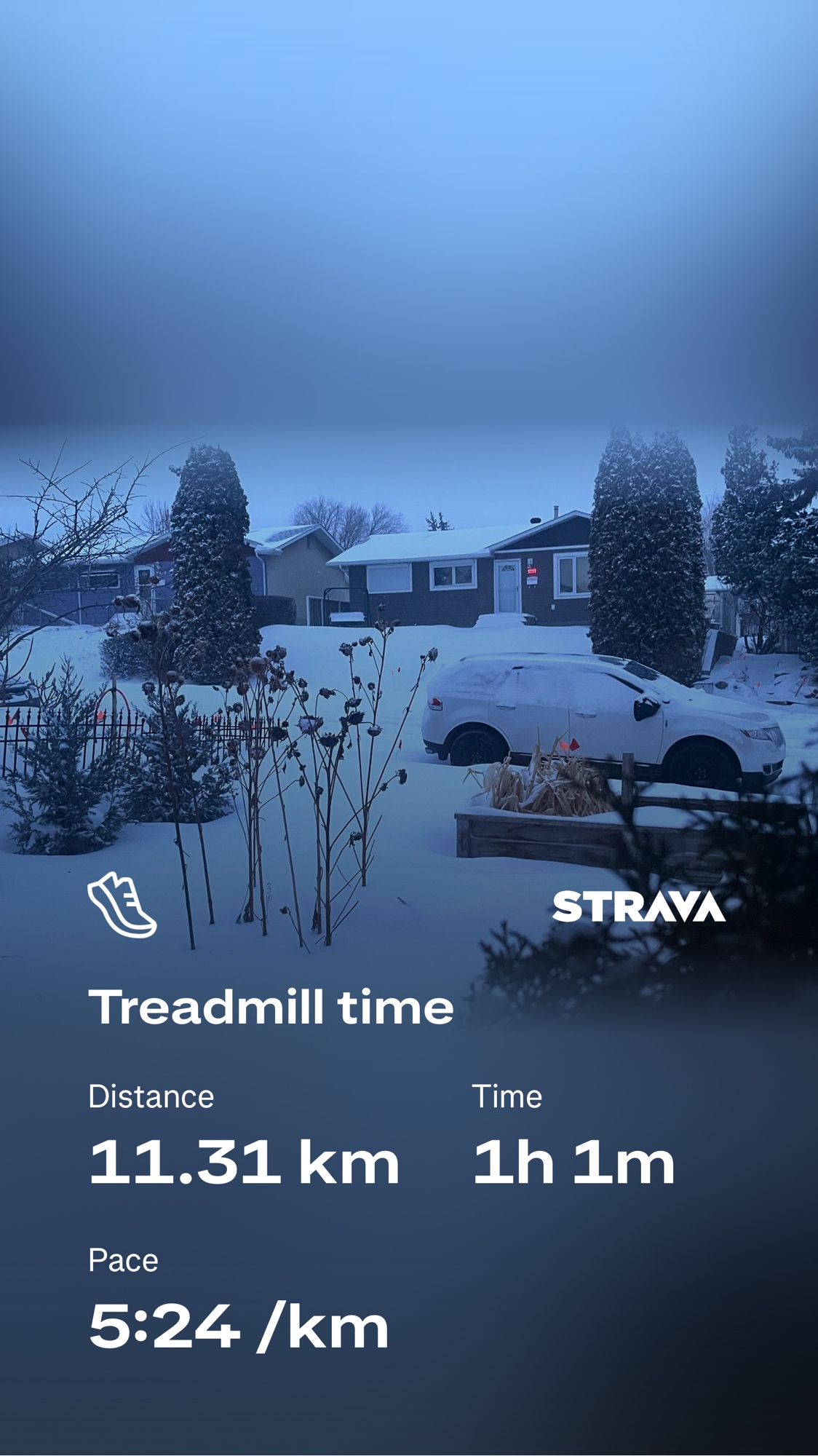 Started the day with thick cold Snow, so another hour on the treadmill it was. #morningmagic #running