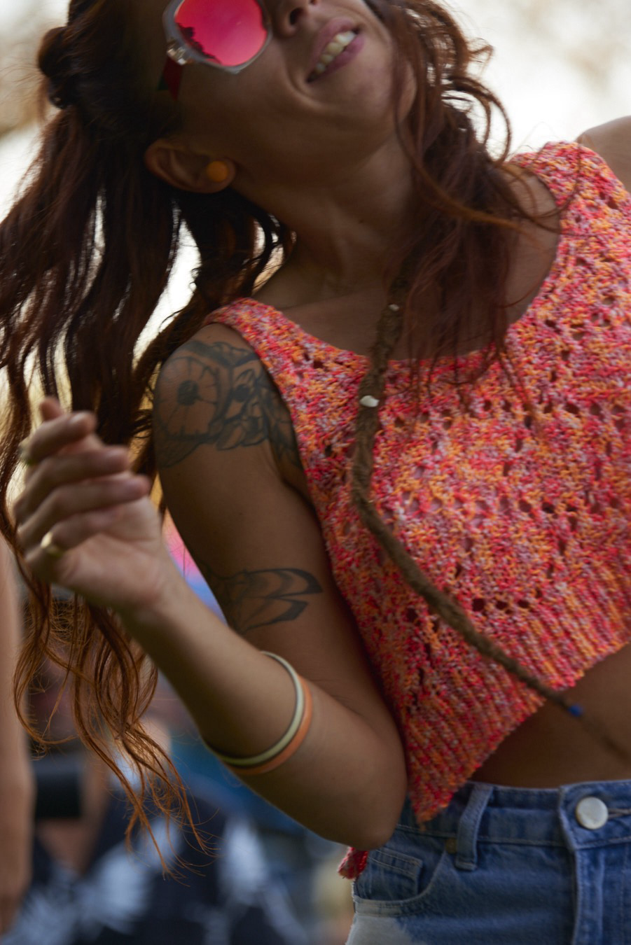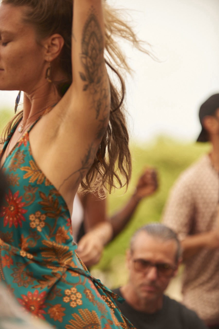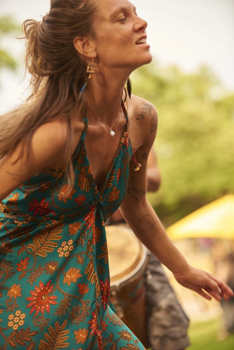 She’s far away, swept out by the moment and sounds.