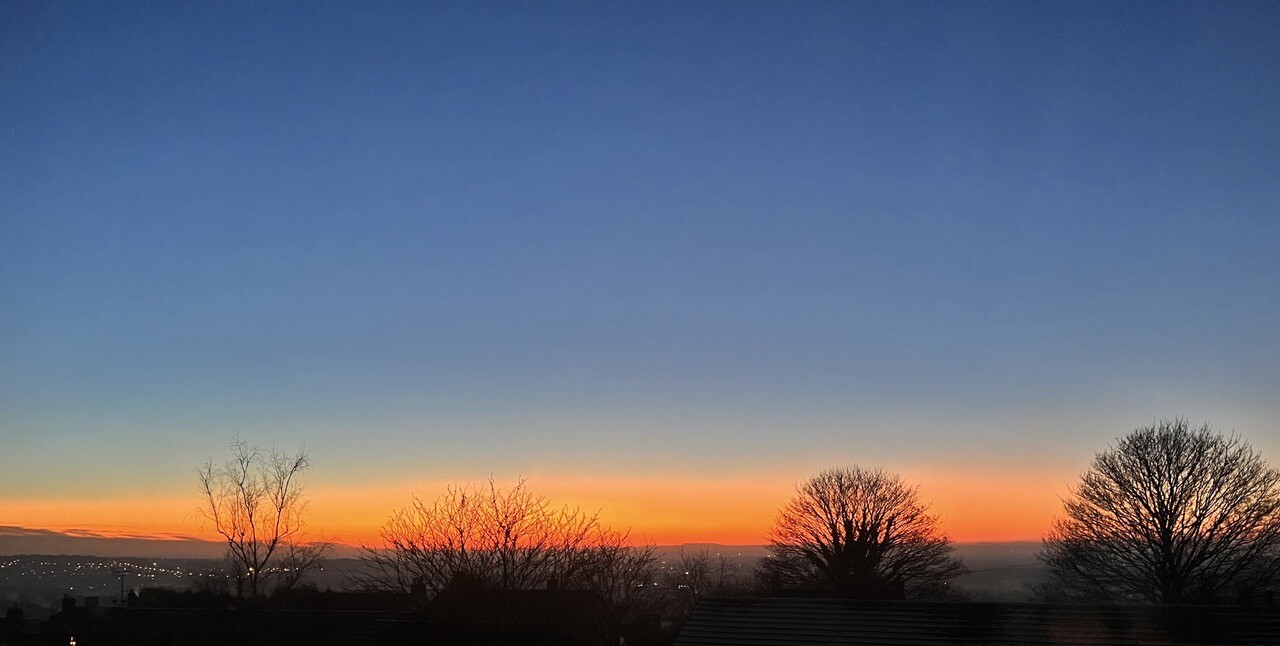 “Beautiful as the Northern Lights are, they're also a fluke of chance. Sunsets have their seasons and there's a diaphanous beauty in the shrouds and tatters of a homespun sky, if you take the time and know when to look. Here's your back yard. 😊”