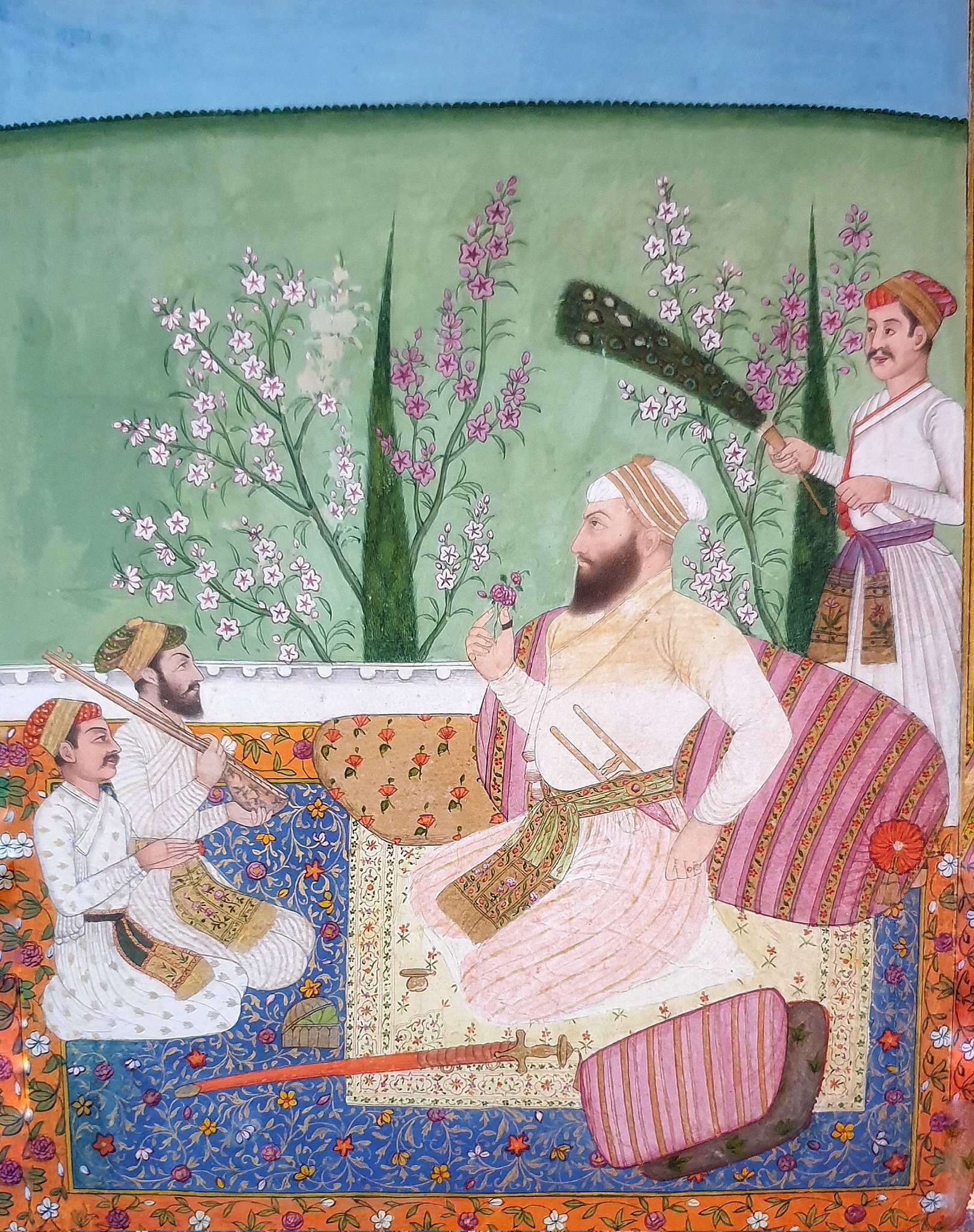 'A Nobleman Seated on a Garden Terrace with #Musicians & an Attendant'.