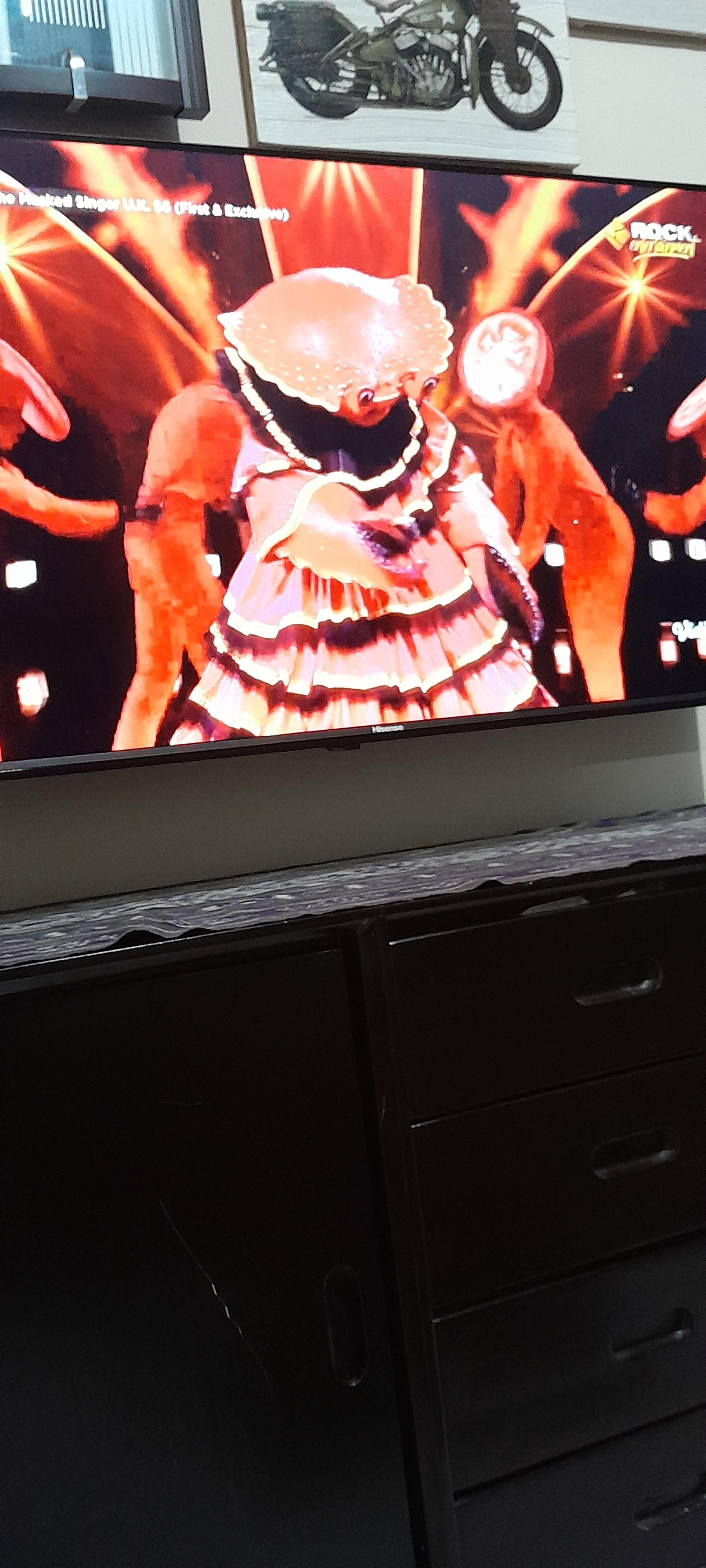 Production team: You should answer "X" (the actual identity of competing character there who wears such ridiculous costume). Do your own research about that X person to look convincing in front of viewers when you make arguments to justify your answer based on what you know from it.