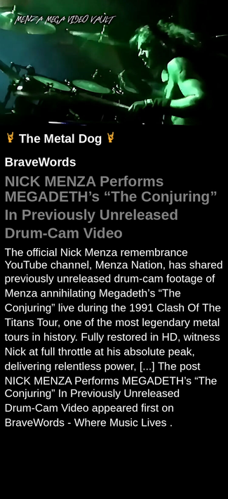 #NICKMENZA #MEGADETH #Watch #Play #newrelease #drummer #BraveWords #metal #music
