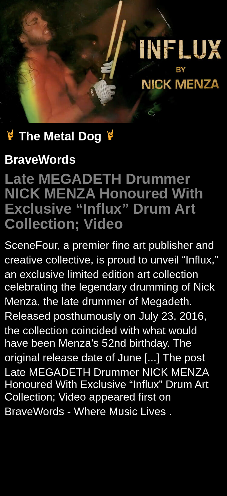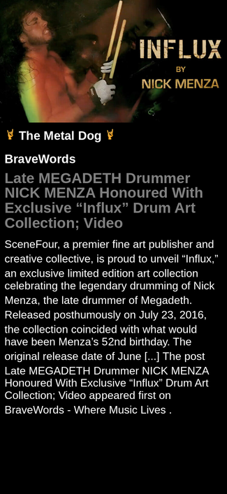Late MEGADETH Drummer NICK MENZA Honoured With Exclusive “Influx” Drum Art Collection; Video