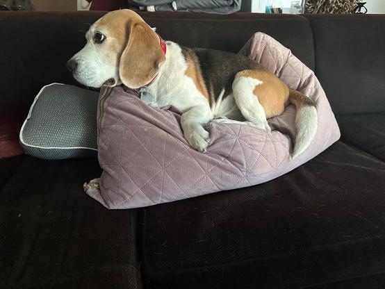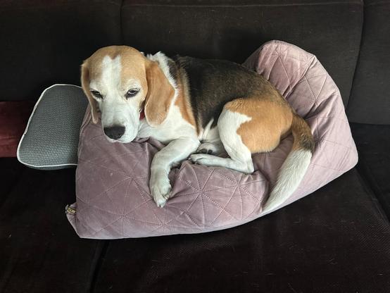 Da im Hause meiner Freundin die Regel gilt, dass kein Hund ins Schlafzimmer darf, sucht sich der selbständig agierende #Beagle im Wohnzimmer sein #Nachtlager auf eigene Faust.