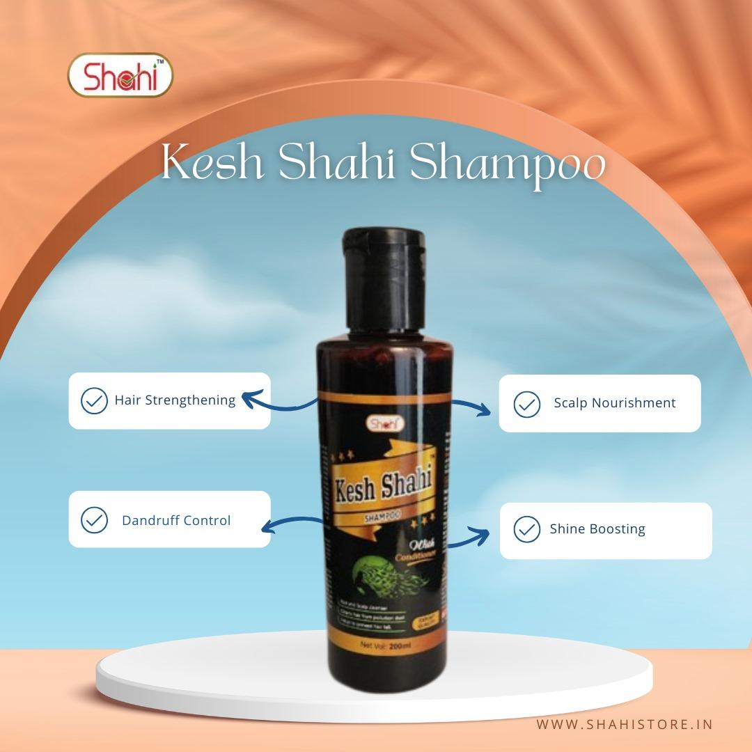 Kesh Shahi Shampoo by Shahi Laboratories blends Amla, Bhringraj, and Shikakai to fight hair fall, improve scalp health, and add natural shine - all without chemicals.