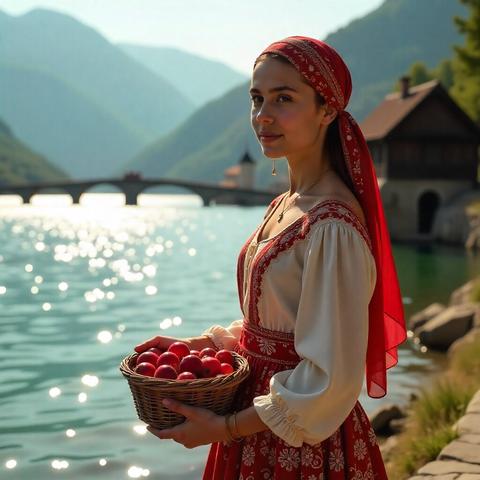 #BosnischesMädchen #ProkoskoSee #TraditionelleKleidung #DimijaStyle #PflaumenErnte #IdyllischeMomente #StariMost #NaturUndKultur #KulturelleReise #EleganteSzene
