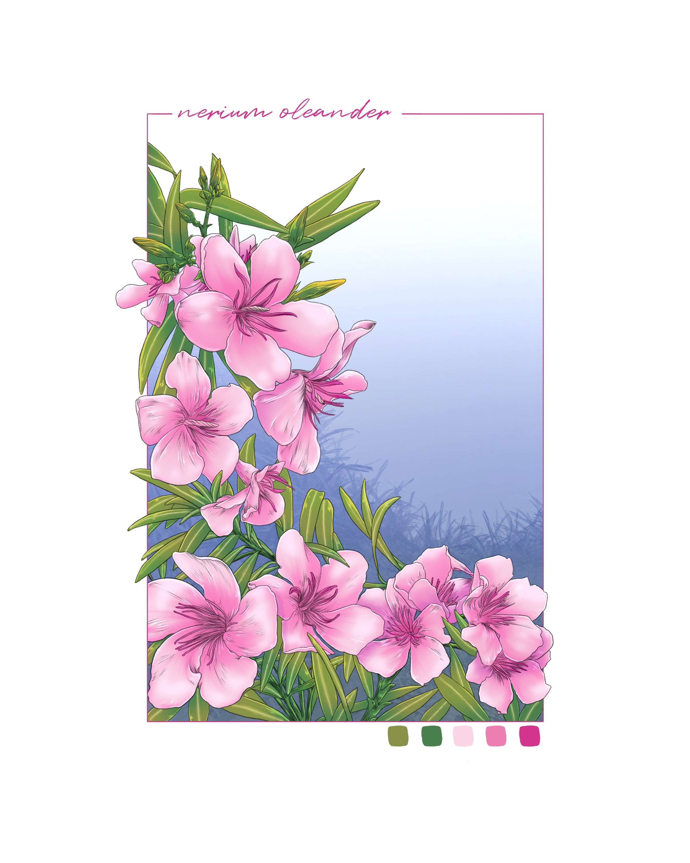 #inktober #inktober2023 #inktoberday25 #plants #nature #horticulture #botany #neriumoleander #nerium #oleander #illustration #artistsonmastodon #artistsofmastodon #digitalart