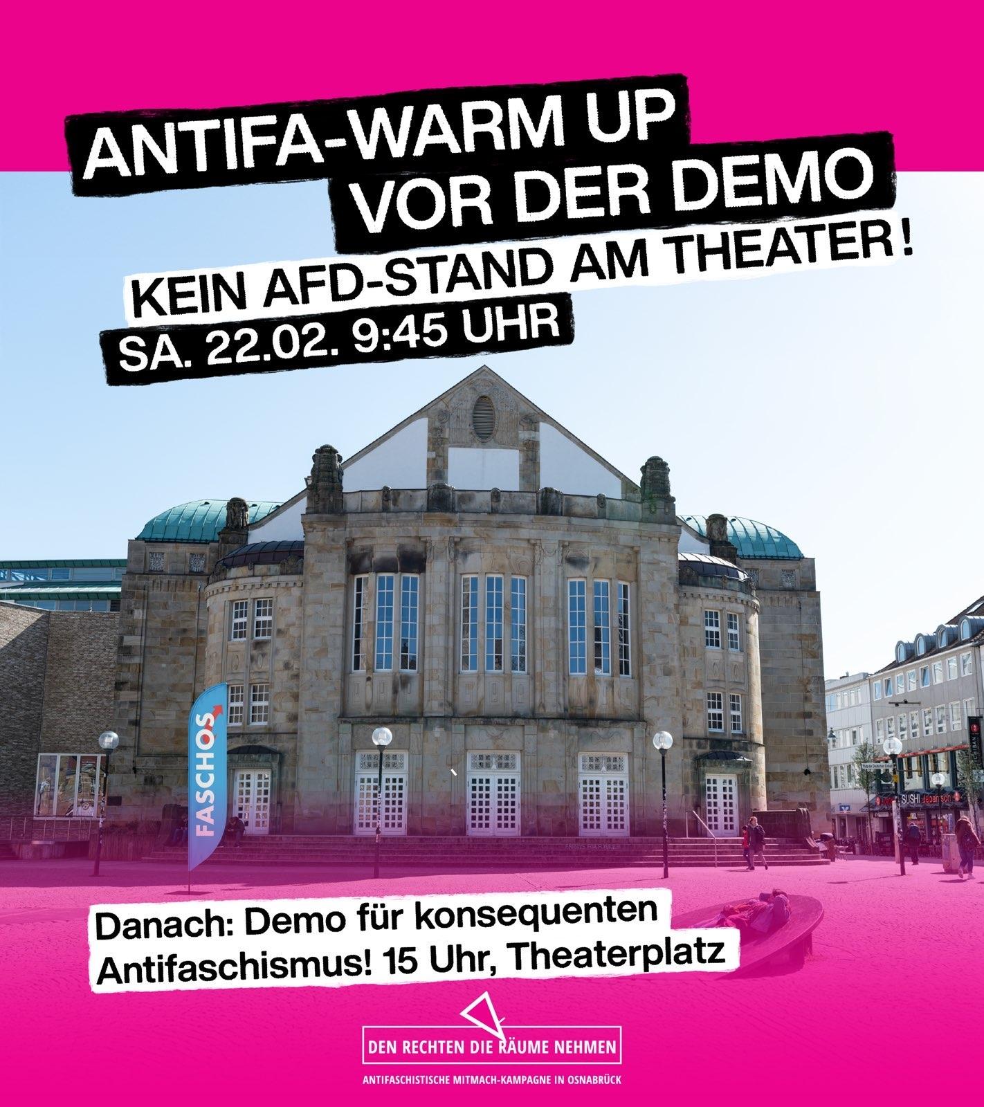 Vor der Demonstration am kommenden Samstag heißt es wieder #DenRechtendieRäumenehmen - Kein AfD-Wahlkampfstand am #Theater! Zusammen vermiesen wir der #AfD ihren Wahlkampf.