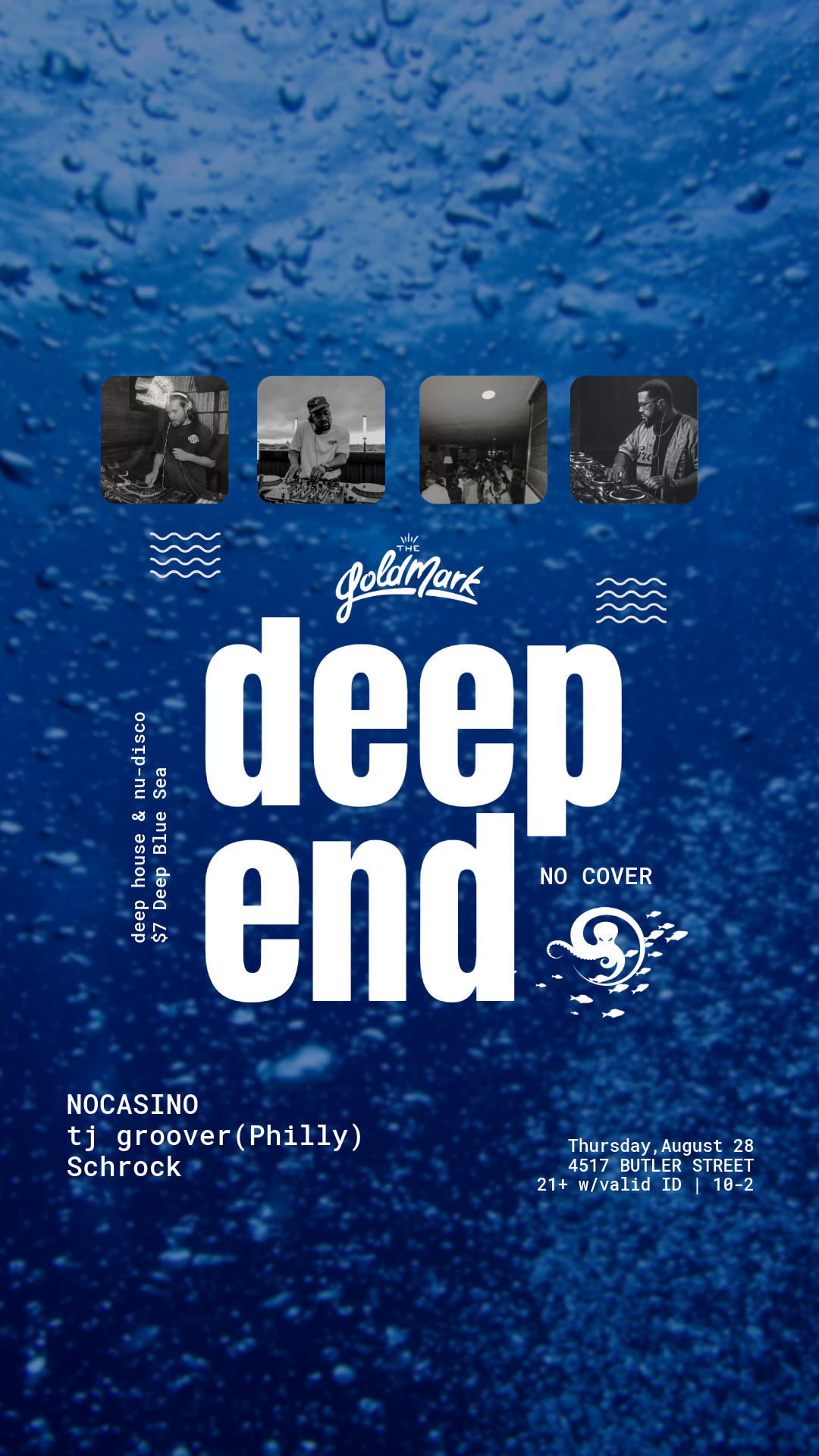 Deep End @ The Goldmark - 28 Aug feat. NOCASINO, tj groover