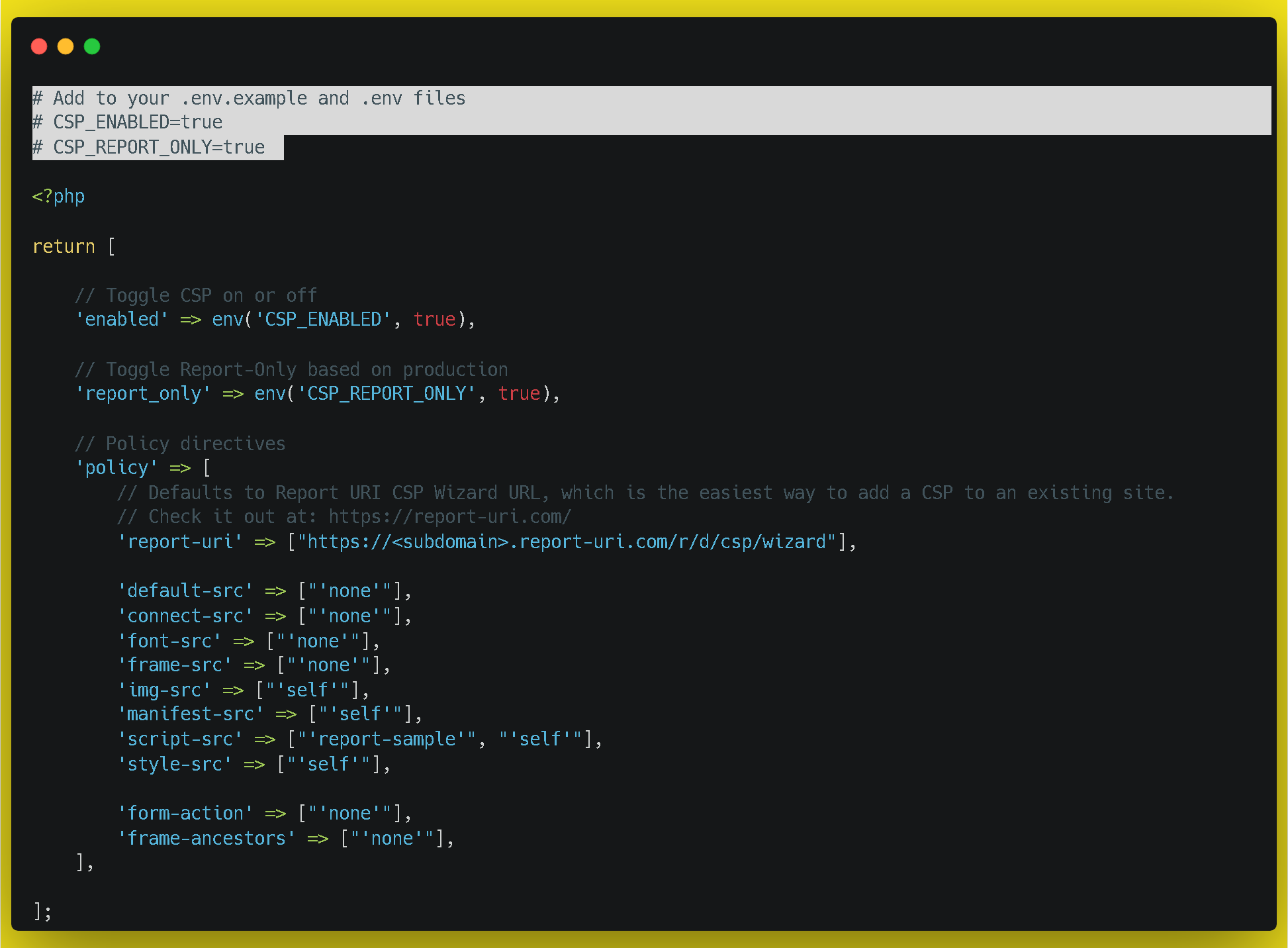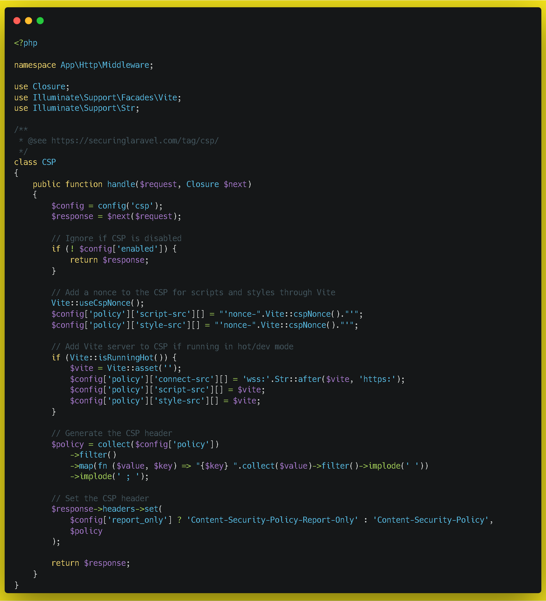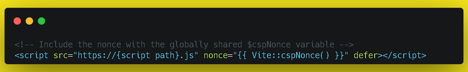 *NOTE: Don't forget to add the CSP middleware into the 'web' #middleware group