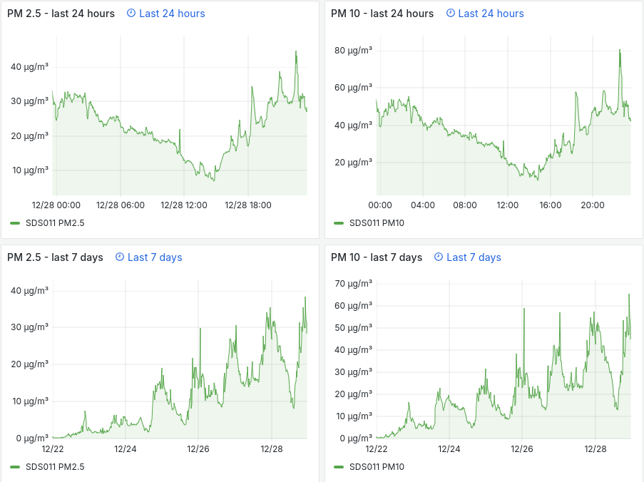 Ich habe gerade die Messwerte unseres Feinstaubsensors der letzten 30 Tage ausgewertet.