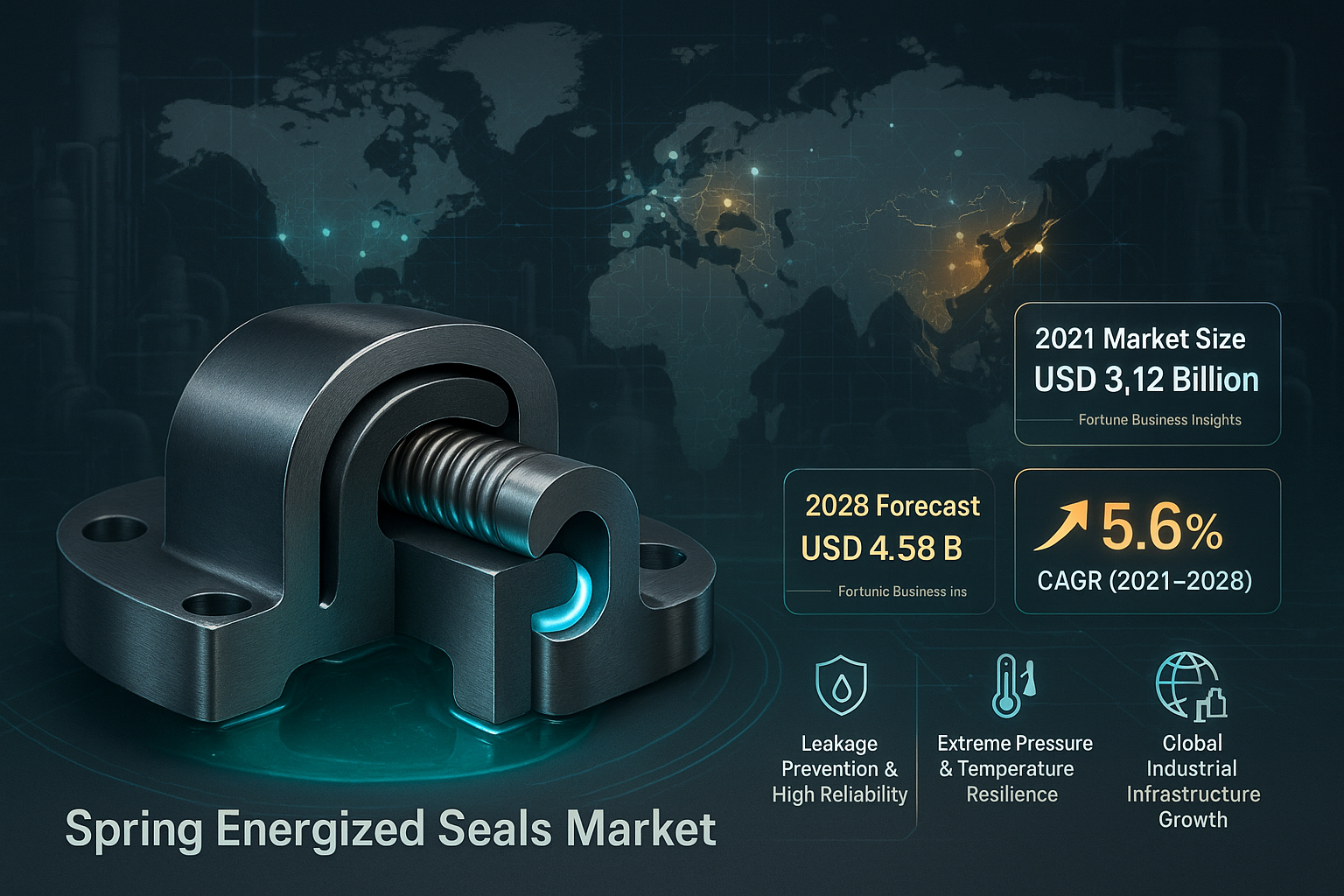The Spring Energized Seals Market is set to grow from $3.12B (2021) to $4.58B by 2028 at a 5.6% CAGR.