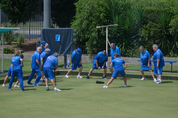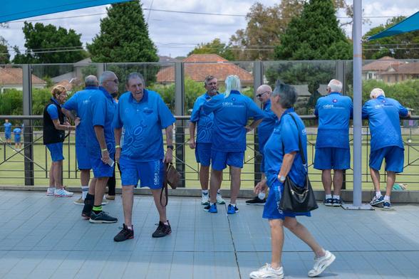 Both individuals appear to be wearing tennis shoes suitable for a sporting activity.