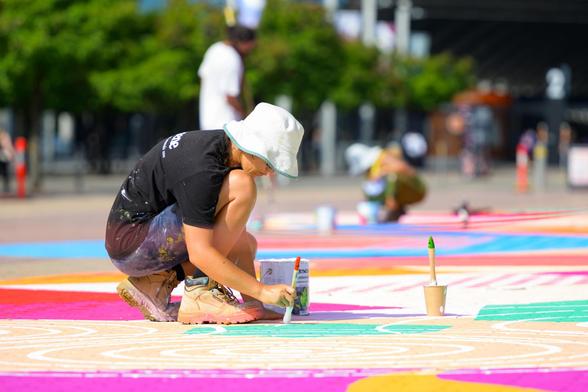 The setting is outdoors during daylight hours."