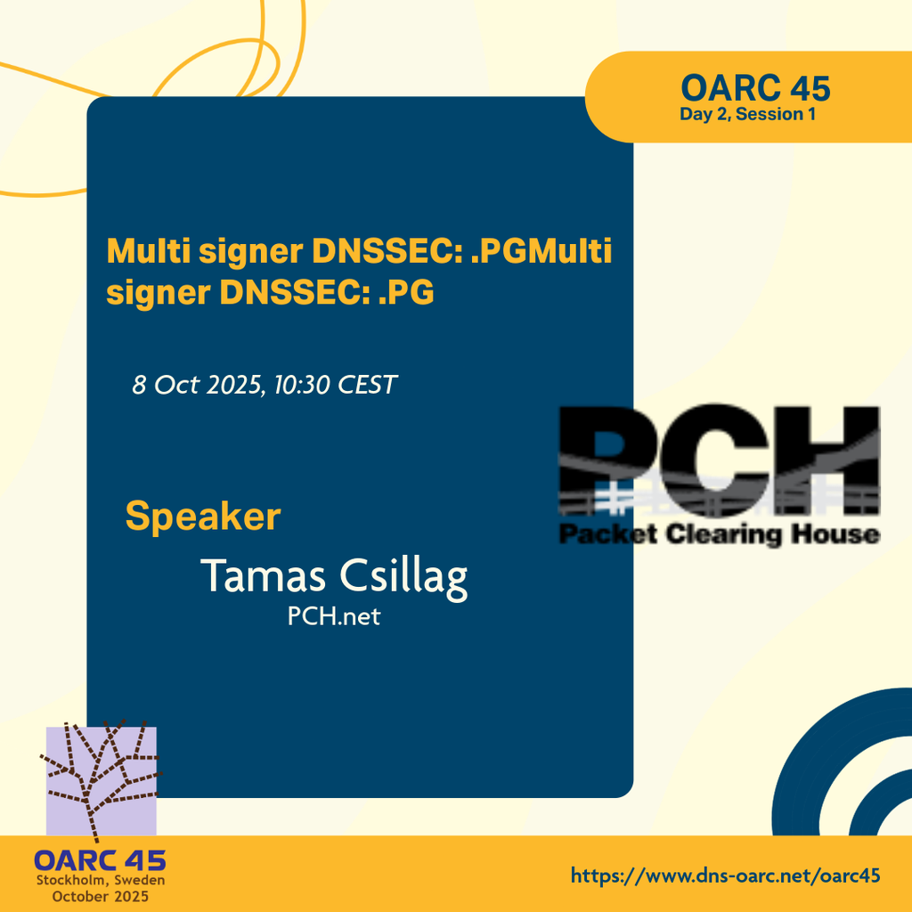 Tamas Csillag (#PacketClearingHouse) shows how RFC 8901 “Model 1” enables resilient, cooperative zone signing.