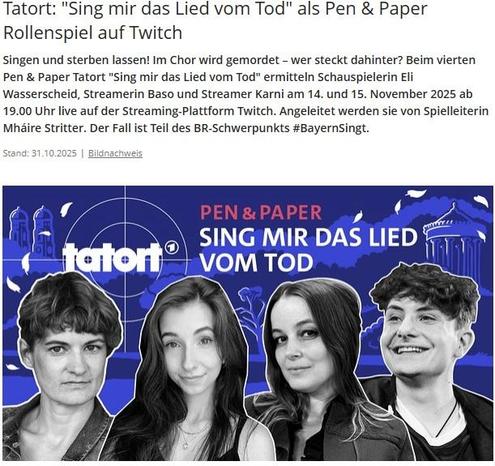 Notiert euch gern den 14. und 15. November, dann wird wieder ermittelt und Mháire darf zum vierten Mal #Tatort #Penandpaper leiten. Dieses Mal dabei: @basostream @its_karni und @eliwasserscheid