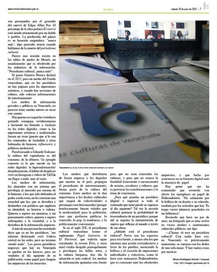 Su visión periodística contribuyó a ampliar los espacios de difusión para la cultura en medios públicos. De esta manera, dejó un legado que seguirá influyendo en nuevas generaciones de periodistas y comunicadores culturales. –sn–