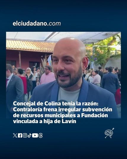La Contraloría General de la República respaldó al concejal Federico Koch, invalidando una subvención de casi tres millones de pesos de Colina a la Fundación Niños del Sur, vinculada a la hija de Joaquín Lavín. Se detectaron irregularidades: proyecto ya ejecutado, sin desglose de gastos y sin impacto comunal para una instancia que ni siquiera es de la localidad ni la región. El dinero no fue entregado.
