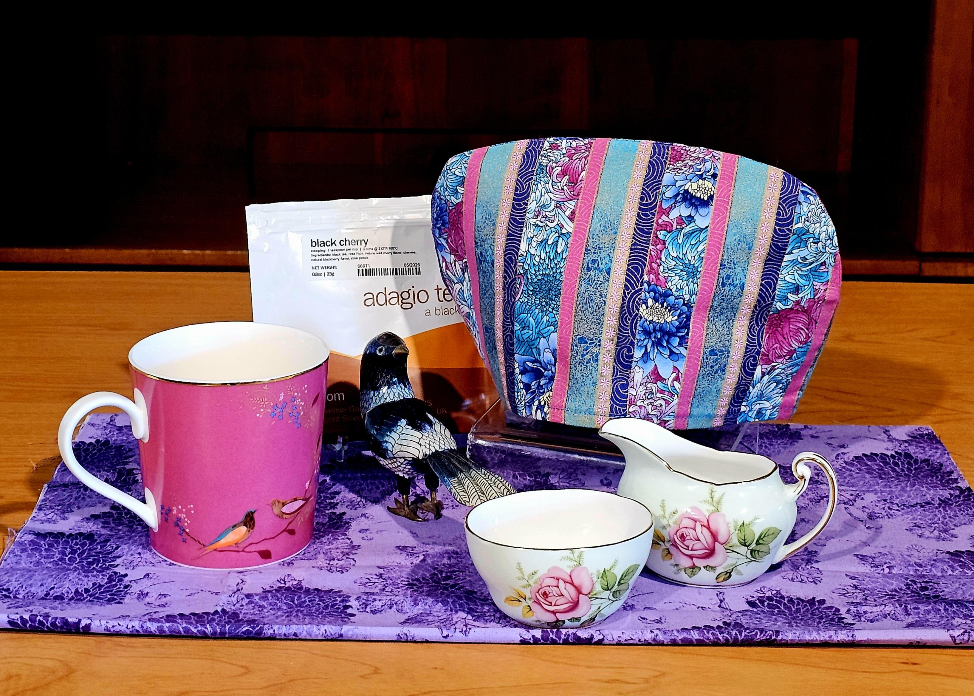 #Tea #Friends #Teableau #TeaCozy #TeaCosy #BlackTea #Handmade #Sewing #VintageChina #Portmeirion #Cloisonne #Enamels #Birds