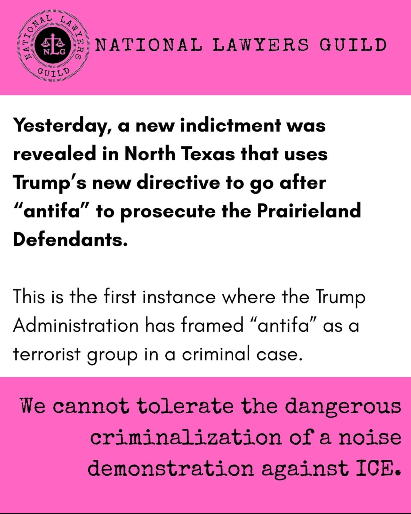 ![Pink and white graphic from the National Lawyers Guild that says: